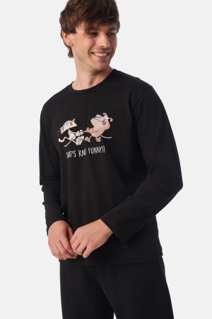 MEI Ανδρική Πυζάμα φούτερ 100% βαμβακερό ύφασμα,εξαιρετικής ποιότητας .Μονόχρωμο παντελόνι, μπλούζα με τύπωμα και λάστιχο στα τελειώματα. Μια επιλογή ..