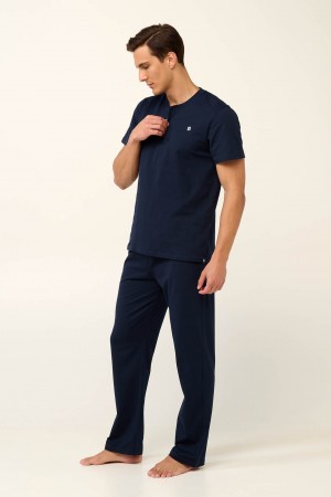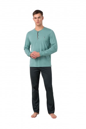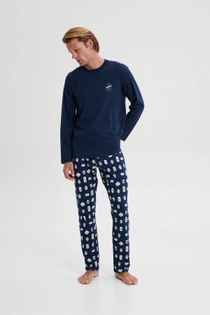 Ανδρική Πυζάμα, με εμπριμέ παντελόνι, μονόχρωμη μπλούζα με κέντημα. Ένα σχέδιο από βαμβάκι με ευχάριστη, νεανική διάθεση.Εξαιρετικής ποιότητας και εφα..