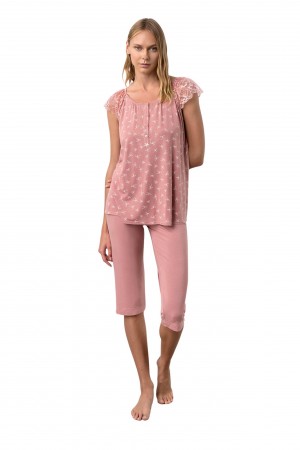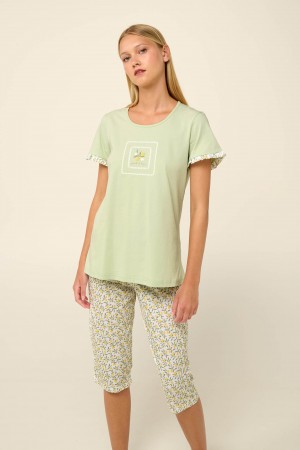 Πυτζάμα σε όμορφο νεανικό εμπριμέ σχέδιο της εταιρείας MEI .Μονόχρωμη μπλούζα με λαιμόκοψη και κέντημα I Like Monsters ,συνδυάζεται με all over print ..