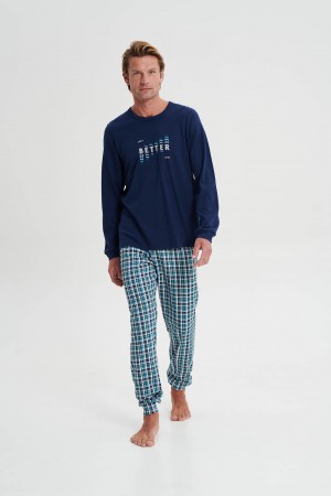 Ανδρική Πυζάμα με στρογγυλή λαιμόκοψη, καρό παντελόνι και τύπωμα Mountain . Μια όμορφη πρόταση από βαμβάκι και καρό λεπτομέρειες που θα σας φτιάξει τη..