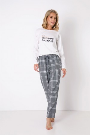Σετ Πυτζάμα homewear της εταιρείας Vamp με διακριτικό σχέδιο. Μπλούζα με λαιμόκοψη και στάμπα. Παντελόνι μακρύ σε ίσια γραμμή.Μαλακό ύφασμα με ελαστικ..