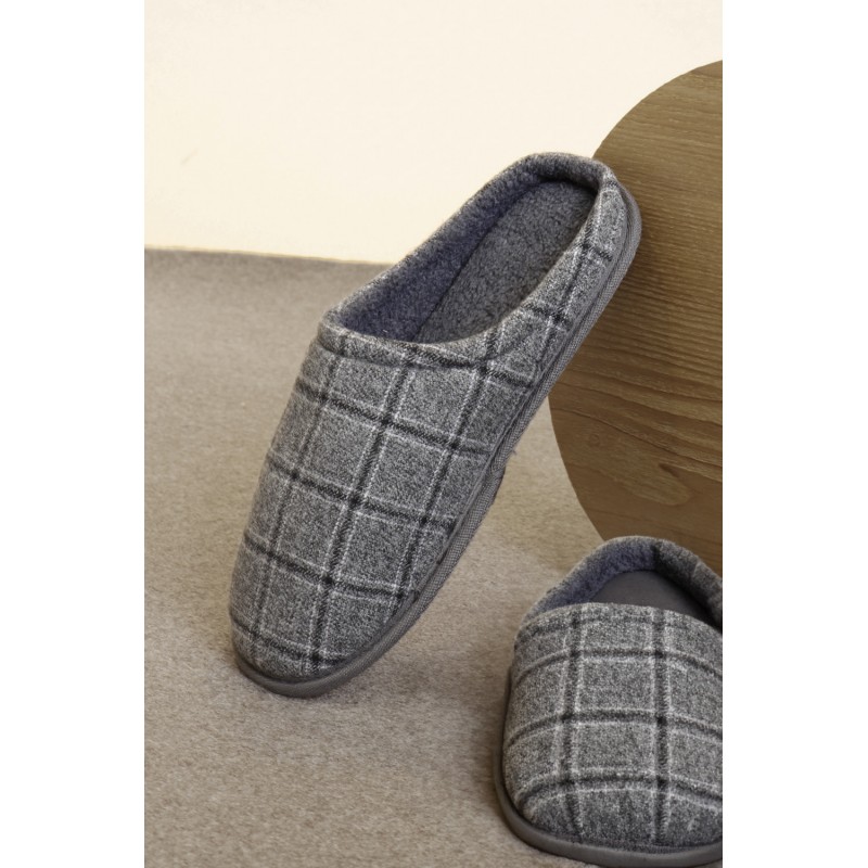 Admas Ανδρική Παντόφλα Καρό Με Σκληρό Πάτο Cuadro Gris