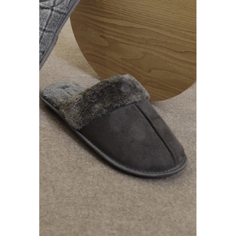 Admas Ανδρική Παντόφλα Μονόχρωμη Με Σκληρό Πάτο & Γούνινη Επένδυση Ante Gris