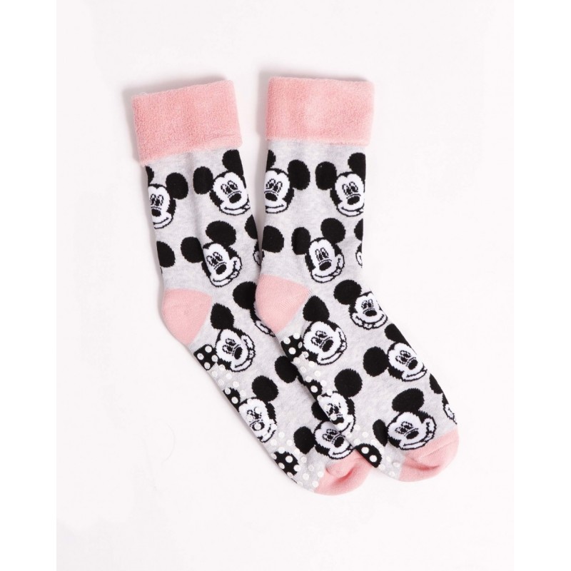 Admas Γυναικεία Κάλτσα - Παντόφλα Βαμβακερή Αντιολισθητική Με Επένδυση Πετσέτα & Σχέδιο Mickey All Over