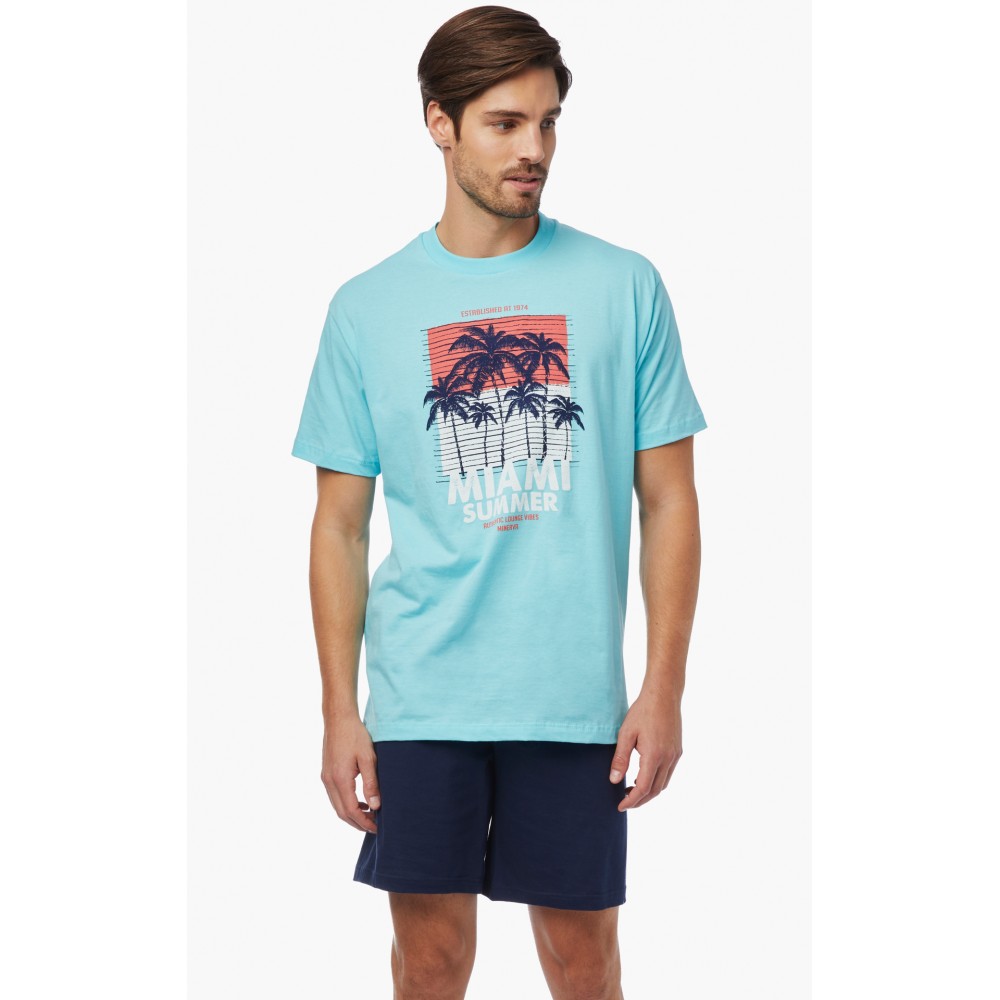 Αυτή η ανδρική Πτζάμα Leon αποτελεί μια ιδανική επιλογή για άνεση και στυλ, βασισμένη στην κλασική βαμβακερή ποιότητα.  Η μπλούζα διαθέτει V λαιμόκοψη, μια κλασική επιλογή που προσφέρει άνεση και μια πιο κομψή γραμμή .Το χαρακτηριστικό γνώρισμα είναι η πετσετέ λεπτομέρεια στο στήθος. Η γραμμή είναι..
