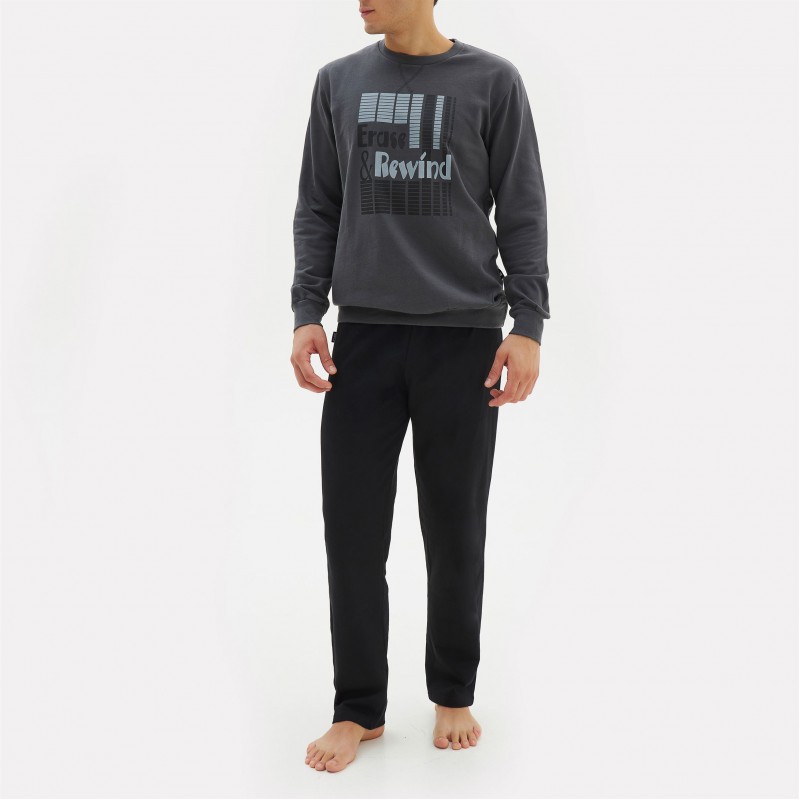 Ανδρική Πυζάμα φούτερ με μονόχρωμο παντελόνι ,συνδυάζεται με μονόχρωμη μπλούζα με τύπωμα Erase & Rewind . Ένα σχέδιο από 100% βαμβακερό ύφασμα με ευχάριστη, νεανική διάθεση .Εξαιρετικής ποιότητας και εφαρμογής, άνετη γραμμή .Πολύ ζεστή κατάλληλη για τις κρύες μέρες και νύχτες του χειμώνα .