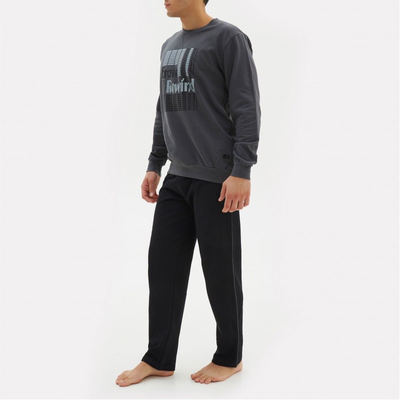 Apple Ανδρική Πυτζάμα Βαμβακερή Μονόχρωμη Με Επένδυση Φούτερ & Τύπωμα Erase & Rewind