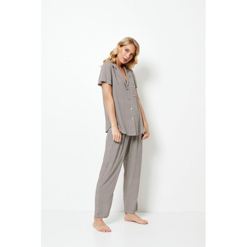 Aruelle Γυναικεία Πυτζάμα Σε Ανδρόγυνο Στυλ Με Κοντό Μανίκι Απο Viscose & Σχέδιο Ρομβάκια Jamila