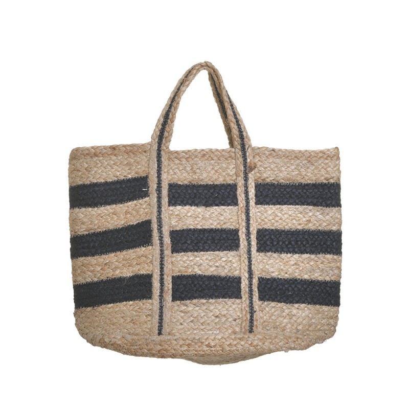 Ble Γυναικεία Τσάντα Ψάθινη Με Μαύρες Ρίγες