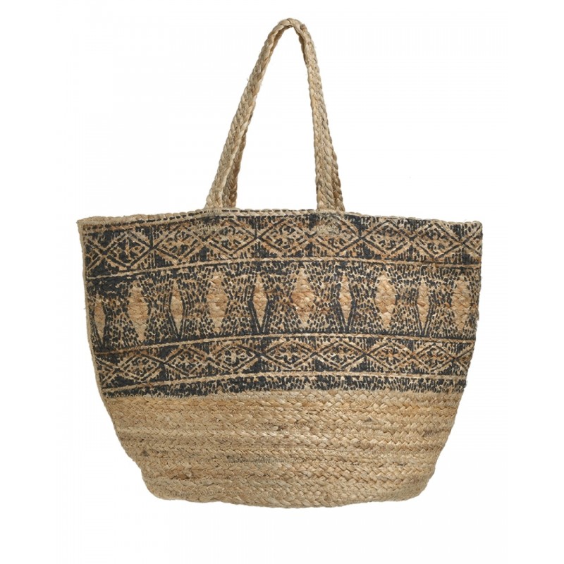 Ble Γυναικεία Τσάντα Ψάθινη Μπεζ Μαύρο Με Σχέδια