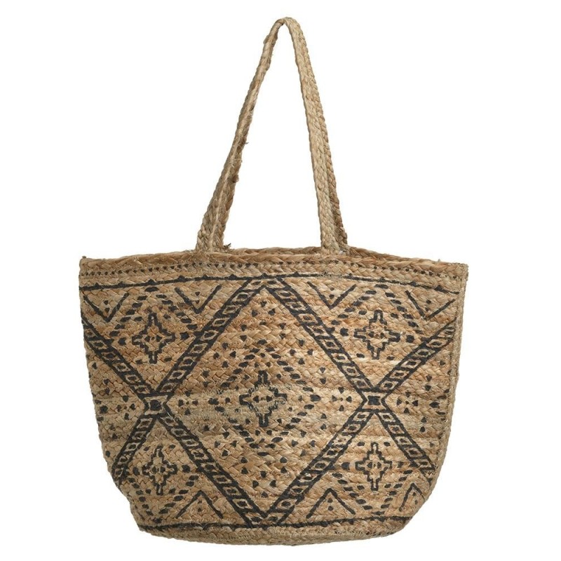Ble Γυναικεία Τσάντα Ψάθινη Μπεζ Με Μαύρα Σχέδια 38*28*33/60
