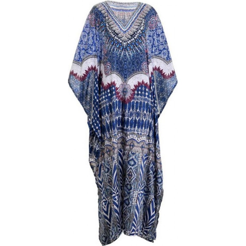 Ble Γυναικείο Φόρεμα Καφτάνι Μακρύ Μπλε Σκούρο