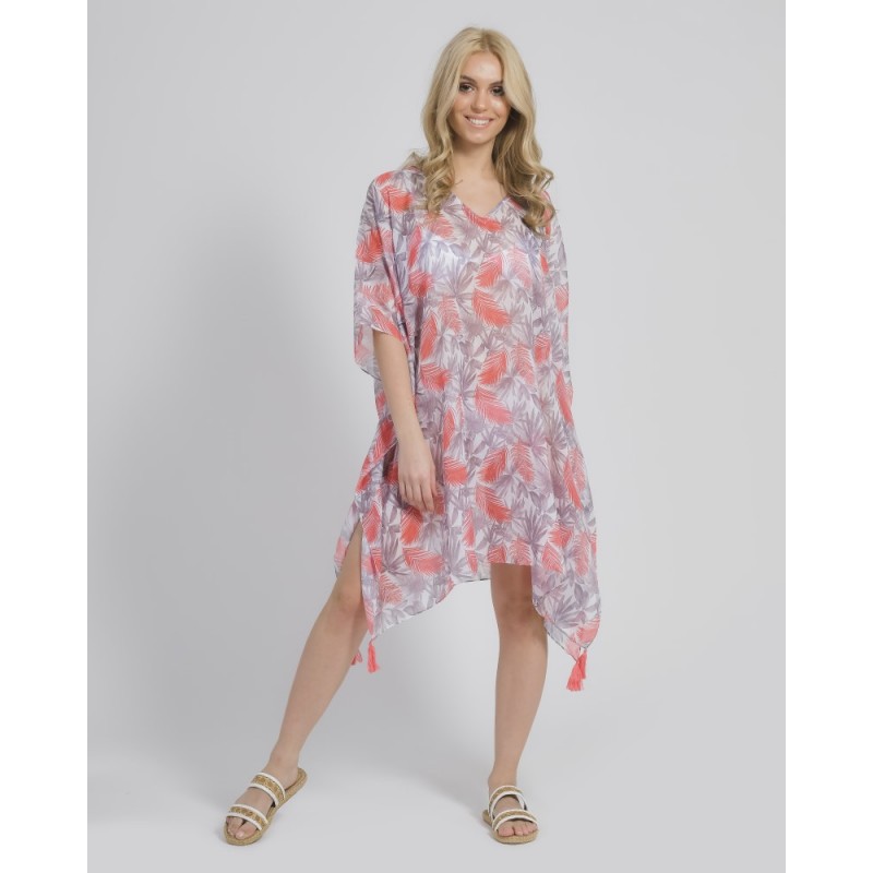 Ble Γυναικείο Φόρεμα Καφτάνι Με Σχέδια Φύλλα