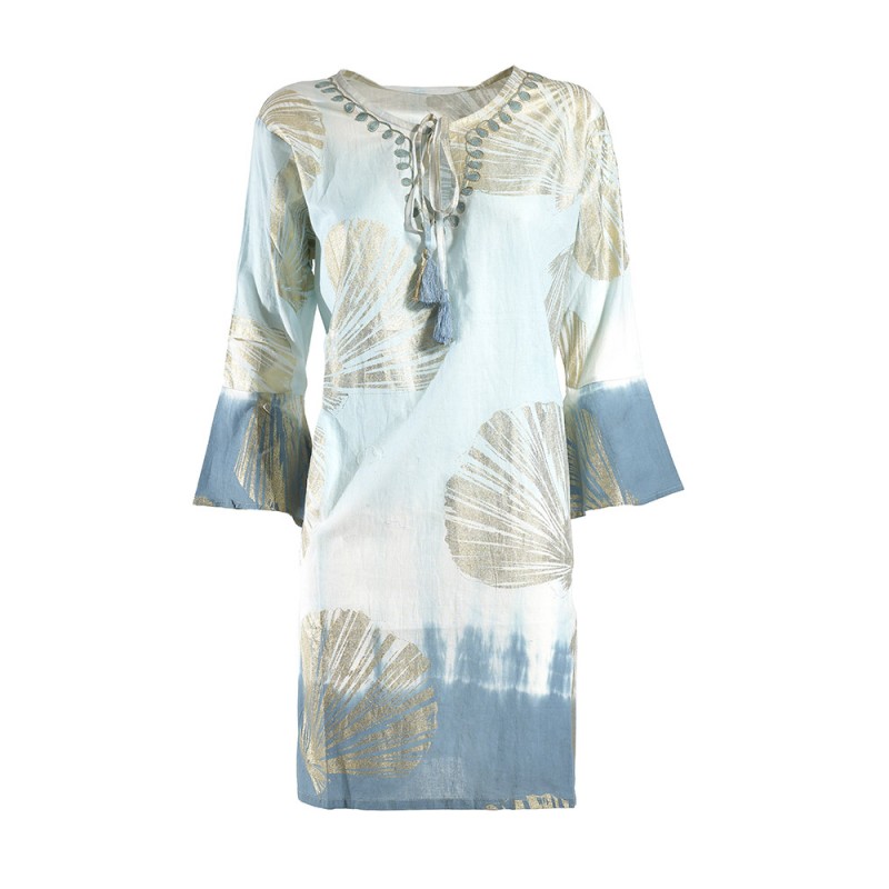 Ble Γυναικείο Καφτάνι Κοντό Βαμβακερό Με Χρυσες Αχιβάδες