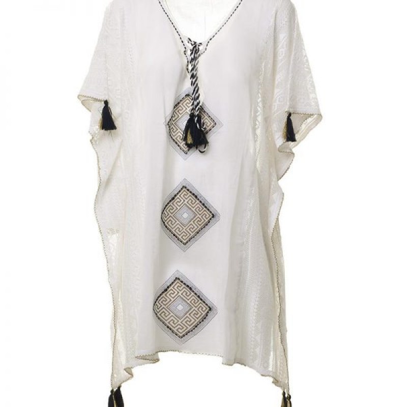 Ble Γυναικείο Καφτάνι Κοντό Λευκό Με Ρόμβους
