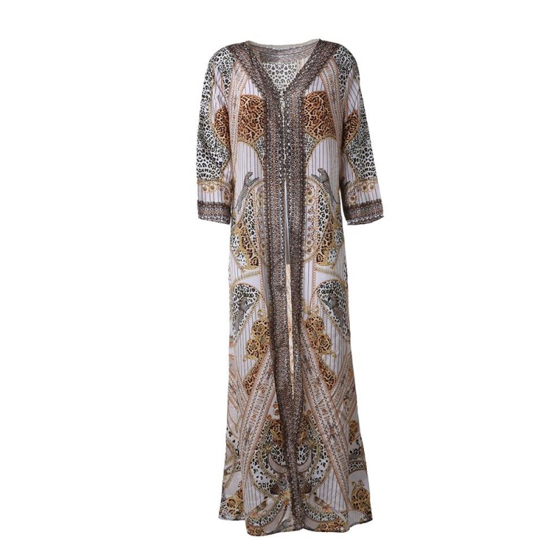 Ble Γυναικείο Κιμονό Εμπριμέ Λευκό Με Χρυσές Λεπτομέρειες