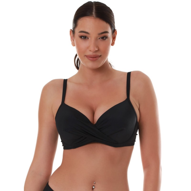 Bluepoint Γυναικείο Μαγιό Σουτιέν Με Μπανέλα & Επένδυση Μονόχρωμο Cup E Solids Χακί & Μαύρο