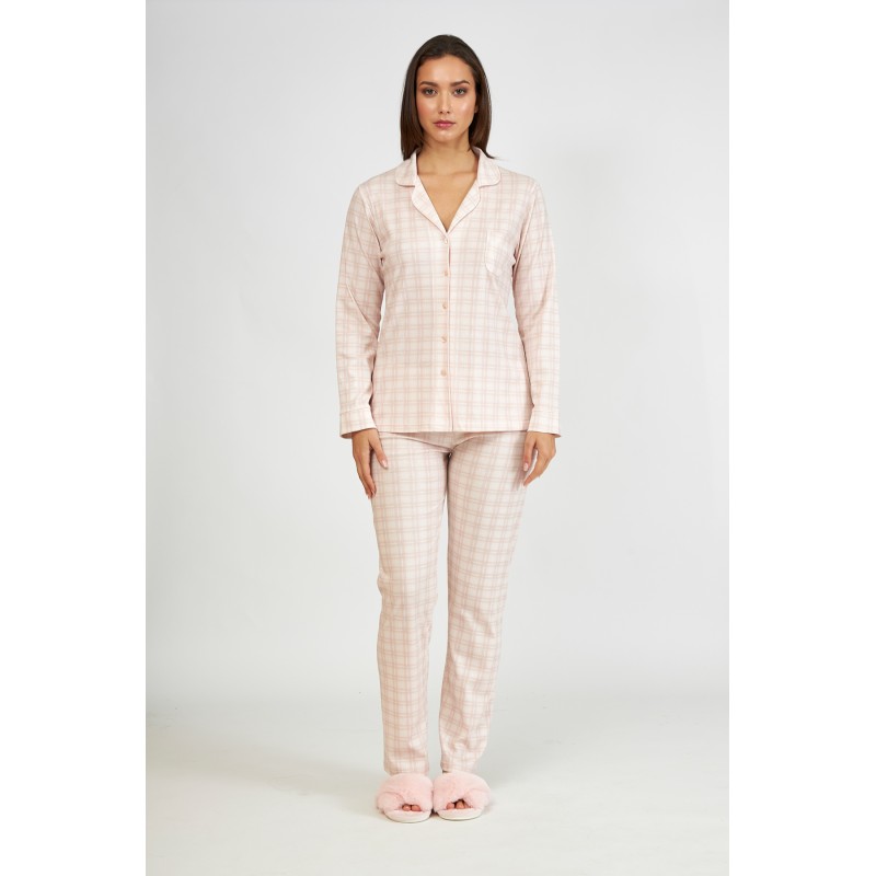 Harmony Γυναικεία Πυτζάμα Βαμβακερή Σε Ανδρόγυνο Καρό Σχέδιο Σε Απαλή Απόχρωση