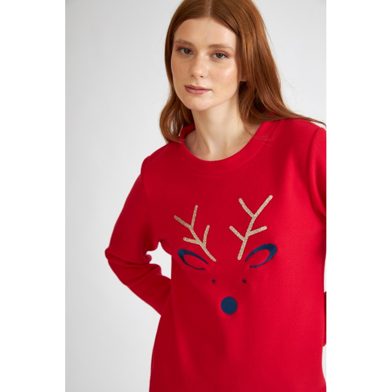 Γυναικεία χειμερινή Πυτζάμα Fleece . Το σετ περιλαμβάνει μονόχρωμη fleece μακρυμάνικη μπλούζα με στρογγυλή λαιμόκοψη και σχέδιο μουσούδα . Συνδυάζεται με καρό παντελόνι . Εντυπωσιακό σχέδιο και νεανικό , υπέροχη υφή , πολύ ζεστό και απαλό . Για matchy matchy family εμφανίσεις το ίδιο σχέδιο υπάρχει σε εφηβικό και παιδικό .