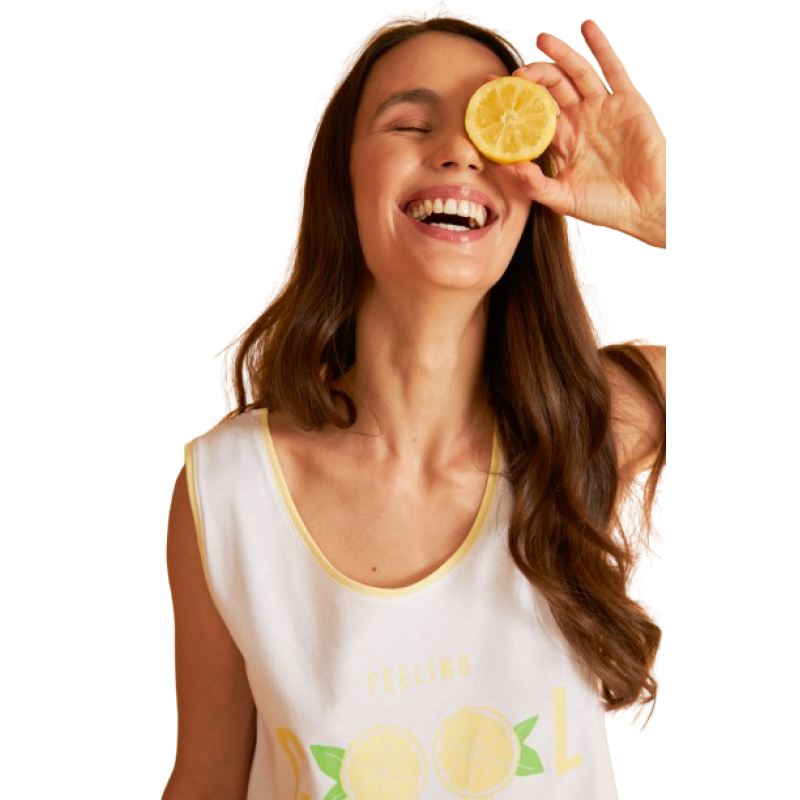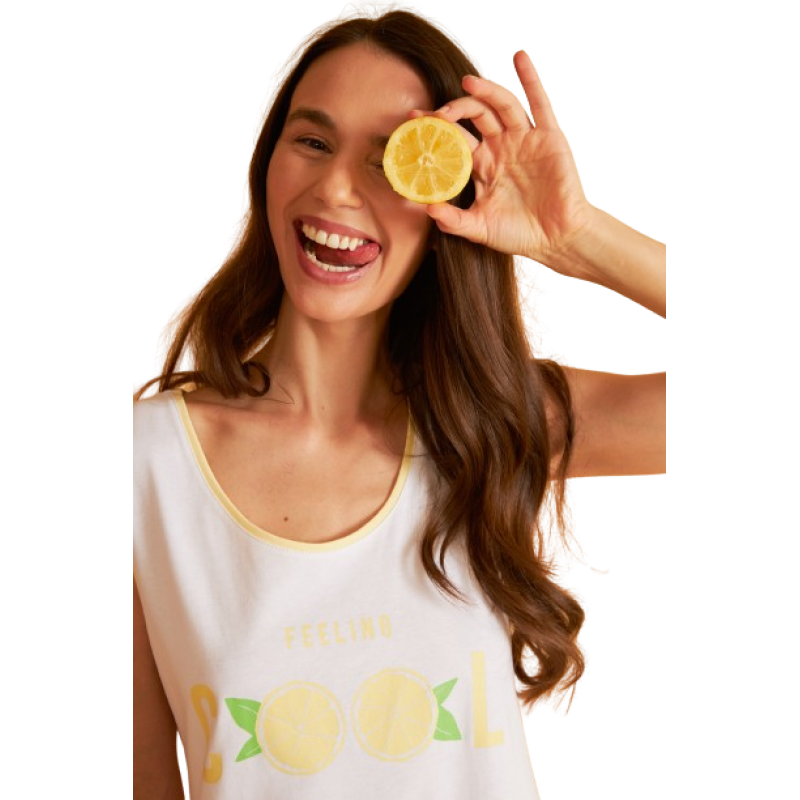 Harmony Γυναικείο Βαμβακερό Νυχτικό Αμάνικο Κοντό Με Σχέδιο Lemon Feeling Cool