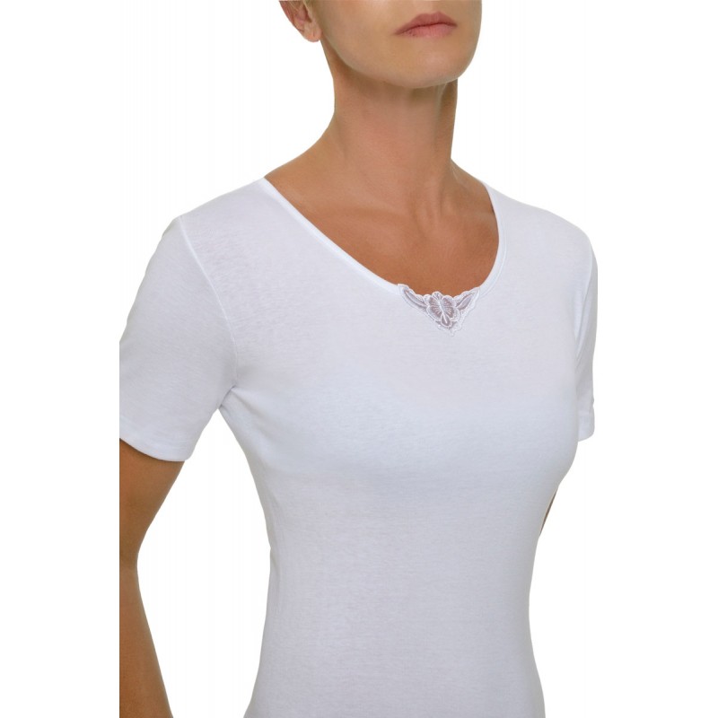 HELIOS Γυναικεία Φανέλα Κοντό Μανίκι Με Δαντέλα 2 Τεμάχια