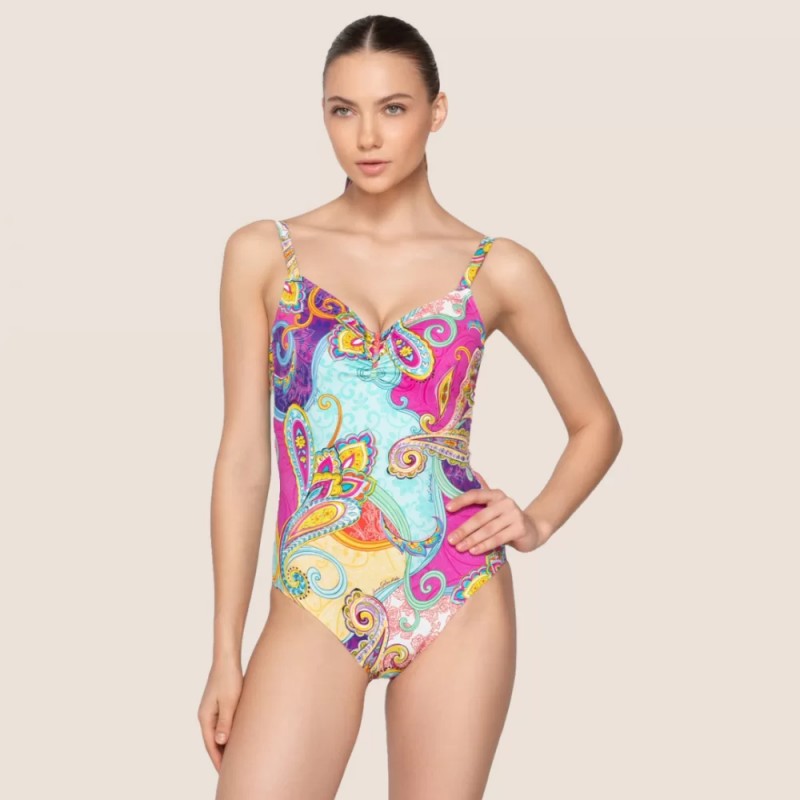 Luna Γυναικείο Μαγιό Ολόσωμο Με Μπανέλα & Σχέδιο Λαχούρια Cup C Madison