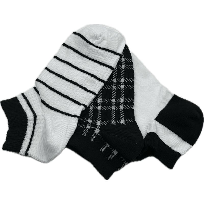 Me We Γυναικεία Βαμβακερή Κοντή Κάλτσα Sneaker - Τερλίκι 3 Ζεύγη Με Σχέδια Ριγέ Λευκό - Μαύρο