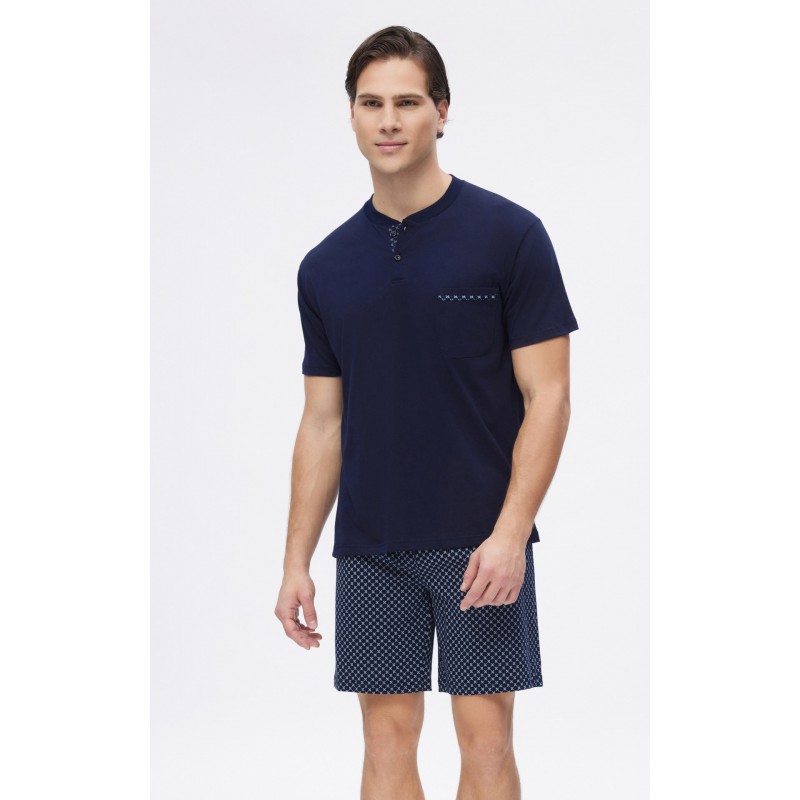 Ανανεώστε τη συλλογή σας με μια ανδρική βαμβακερή καλοκαιρινή πυτζάμα ,απαραίτητο ρούχο για τους ζεστούς καλοκαιρινούς μήνες . Θα σας χαρίσει ανάλαφρη και δροσερή αίσθηση για έναν ευχάριστο βραδινό ύπνο.Κατασκευασμένη από 100% βαμβάκι, ένα φυσικό υλικό που επιτρέπει στο δέρμα να αναπνέει και απορροφά την υγρασία, κρατώντας σας δροσερούς και άνετους.