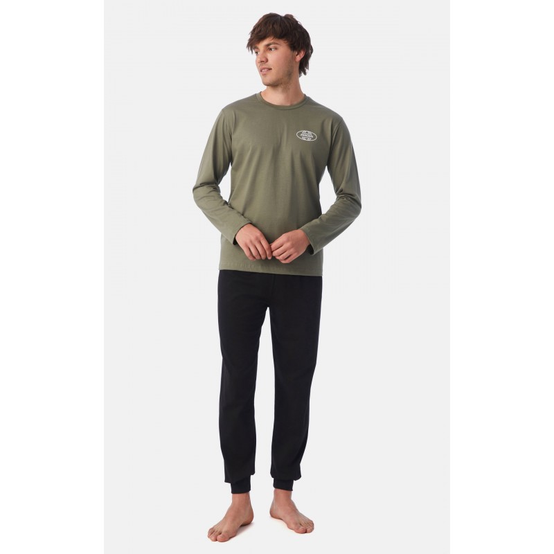 Minerva Ανδρική Πυτζάμα Βαμβακερή Μονόχρωμη Fun Fact Σε Χακί