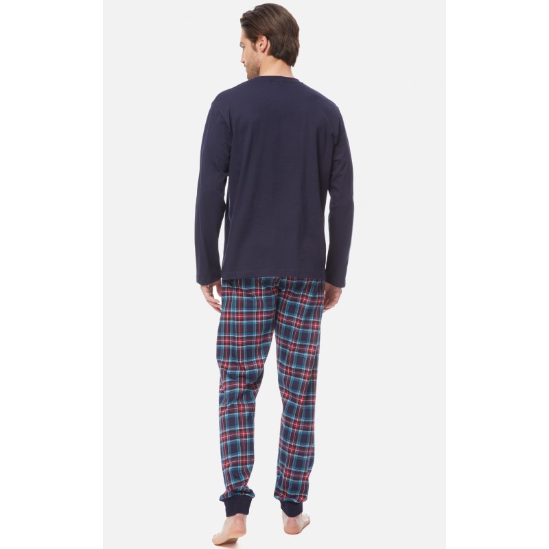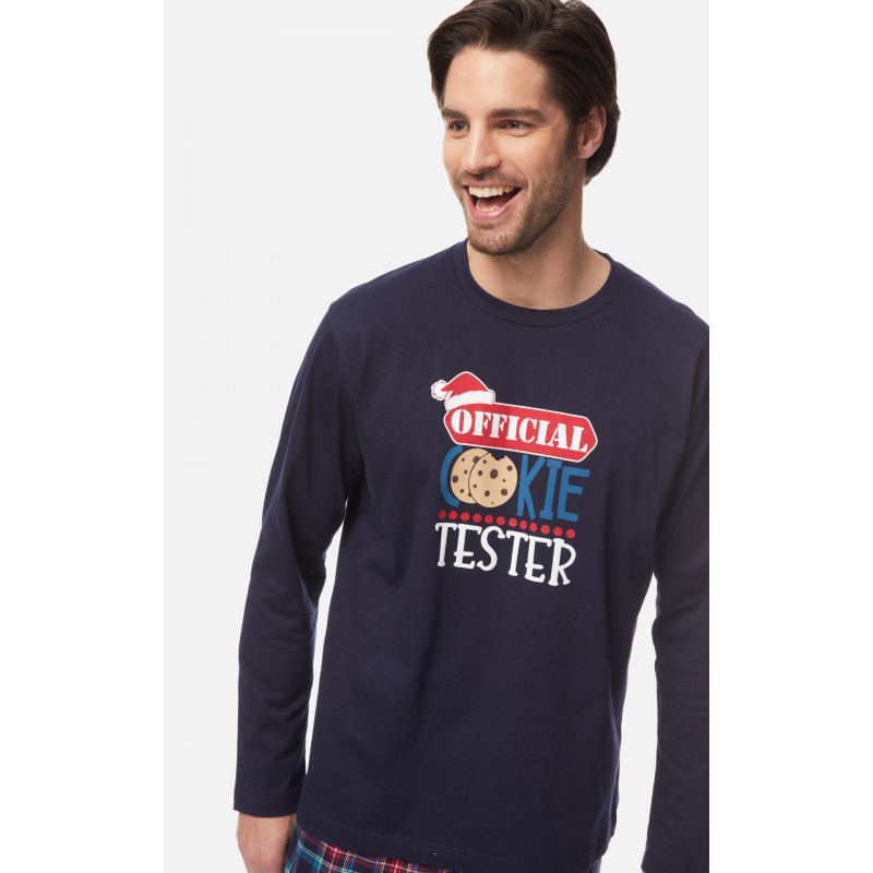 Αντρική χριστουγεννιάτικη Πυζάμα από 100% βαμβακερό ύφασμα υψηλής ποιότητας. Το σετ περιλαμβάνει μονόχρωμη μακρυμάνικη μπλούζα με στρογγυλή λαιμόκοψη και χριστουγεννιάτικο τύπωμα στο κέντρο. Συνδυάζεται με μακρύ καρό παντελόνι με μπάσκες. Δημιουργήστε το απόλυτο χριστουγεννιάτικο family matching outfit επιλέγοντας τις αντίστοιχες γυναικείες και παιδικές πιτζάμες.