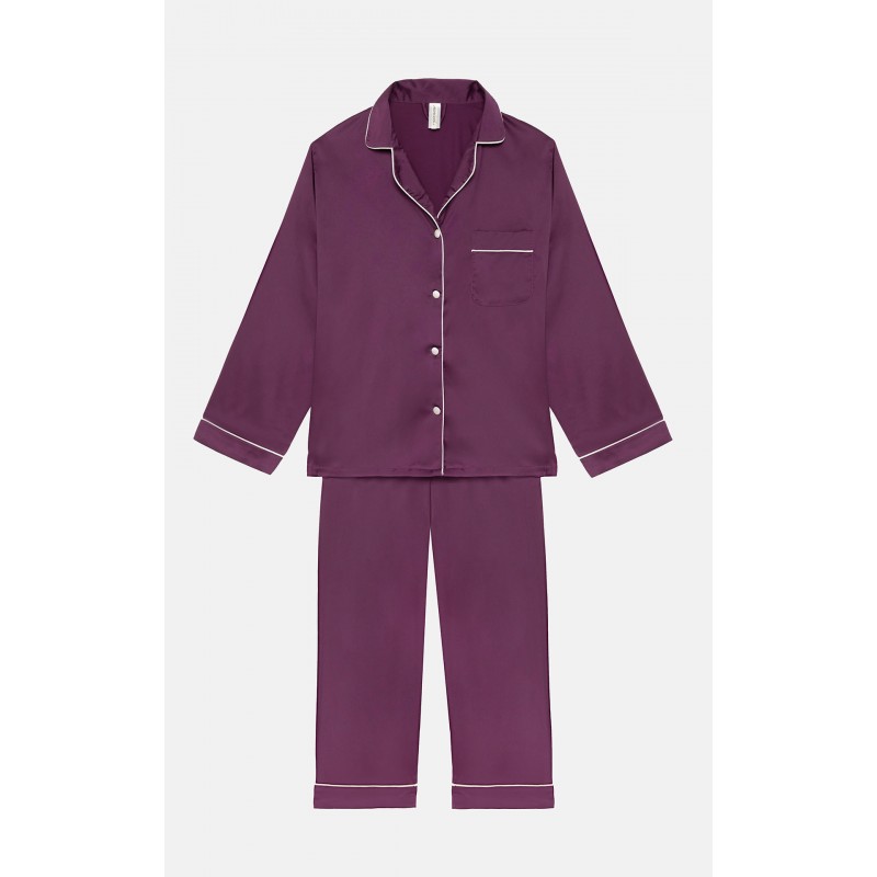 Minerva Γυναικεία Πυτζάμα Σατέν Σε Ανδρόγυνο Στύλ Μονόχρωμη Mauve Shadow