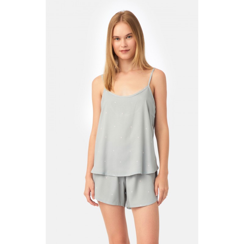 Γυναικεία πυτζάμα baby doll από 100% Viscose εξαιρετικής ποιότητας, με πουά τύπωμα. Το σετ αποτελείται από αμάνικο τοπ με μπριτέλα και κοντό σορτς.Θηλυκό σχέδιο με νεανική, καλοκαιρινή διάθεση και υπέροχο σχέδιο,καλύπτει μεγέθη έως 2 XL .Δροσερό ύφασμα που προσφέρει άνεση όλες τις ώρες της ημέρας .Με την εγγύηση της Minerva ,η νέα collection άνοιξη – καλοκαίρι ’24 θα σας εντυπωσιάσει.