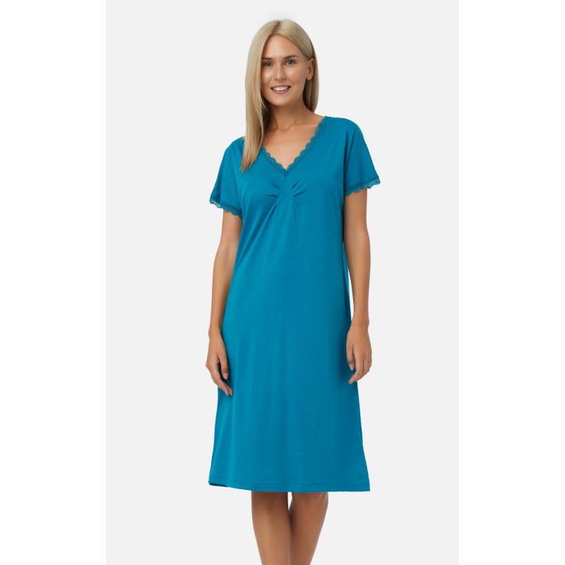 Minerva Γυναικείο Νυχτικό Cotton - Modal Κοντομάνικο Με V Λαιμόκοψη Tencel Green Lagoon