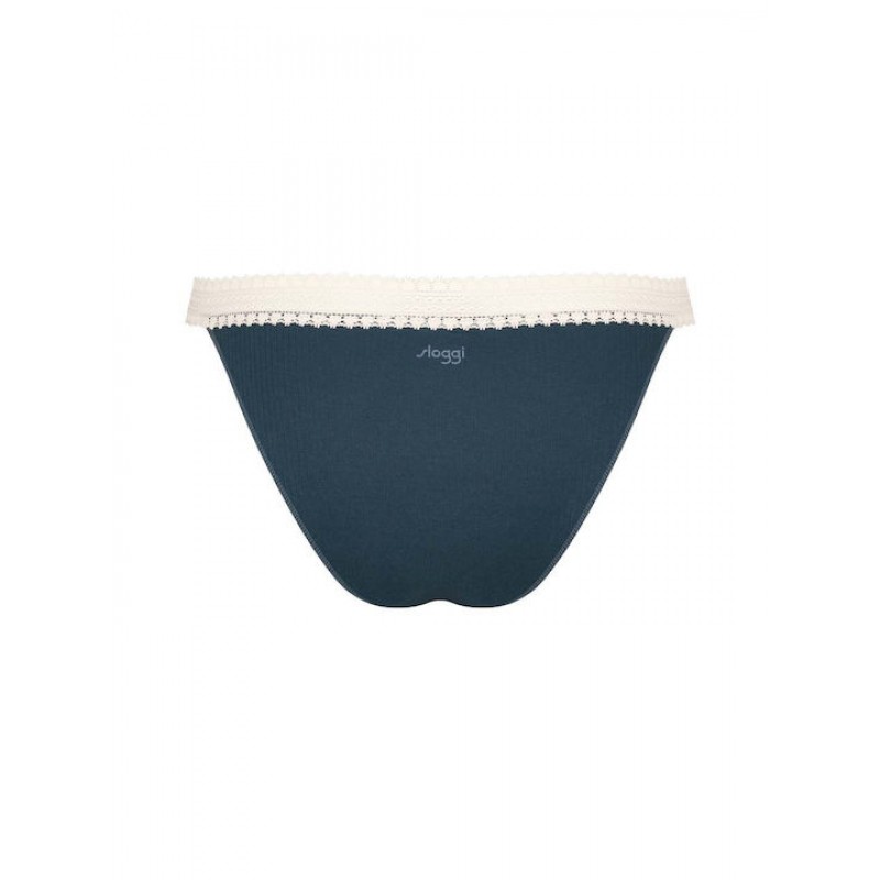 Sloggi Γυναικείο Σλιπ Με Δαντέλα Go Ribbed H Tanga 2 Τεμάχια Navy/grey