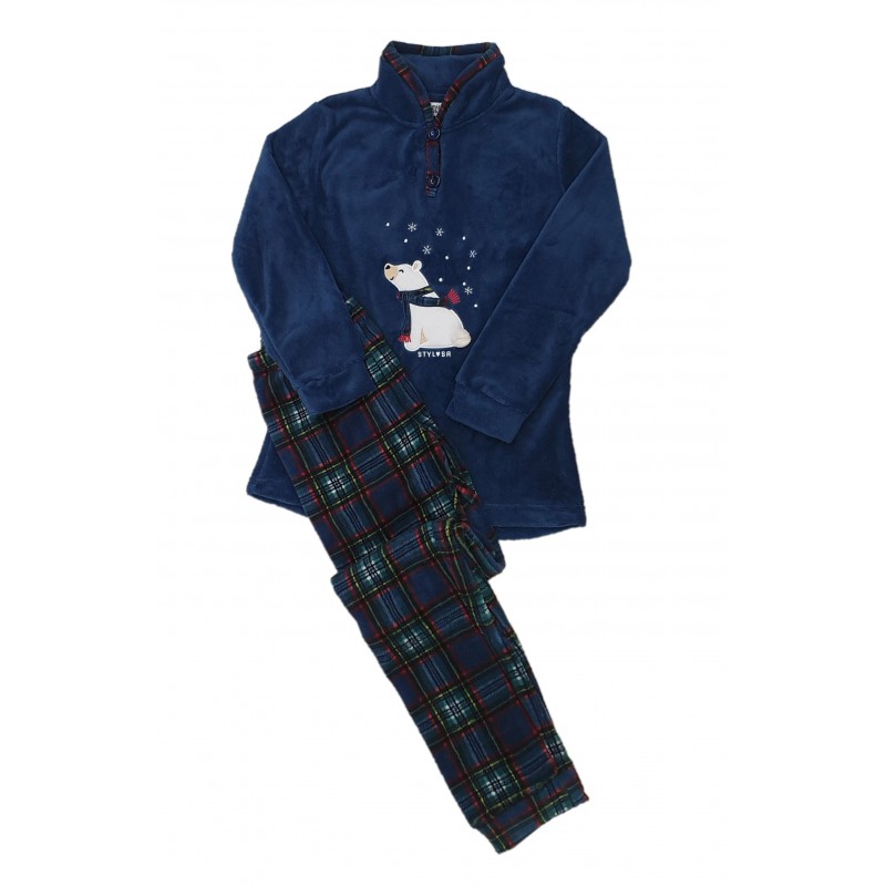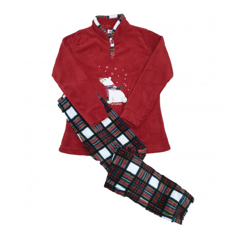 Stylosa Γυναικεία Πυτζάμα Fleece Με Καρό Παντελόνι