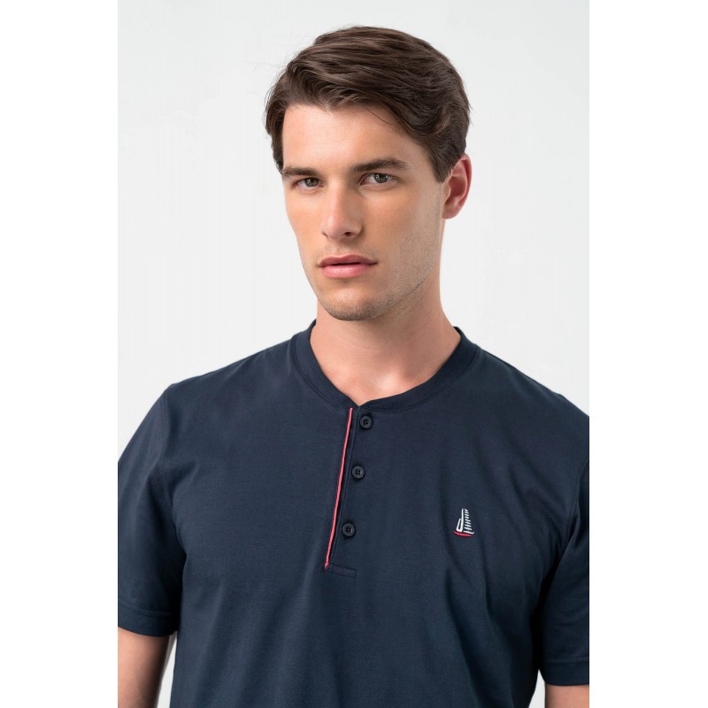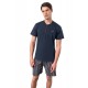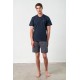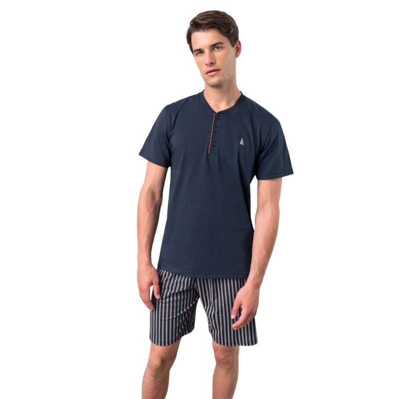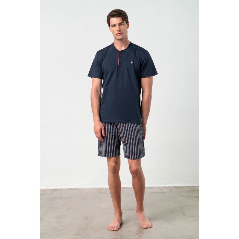 Vamp Ανδρική Πυτζάμα Κοντό Μανίκι Με Κουμπιά Μονόχρωμη Μπλούζα Βερμούδα Με Ρίγες