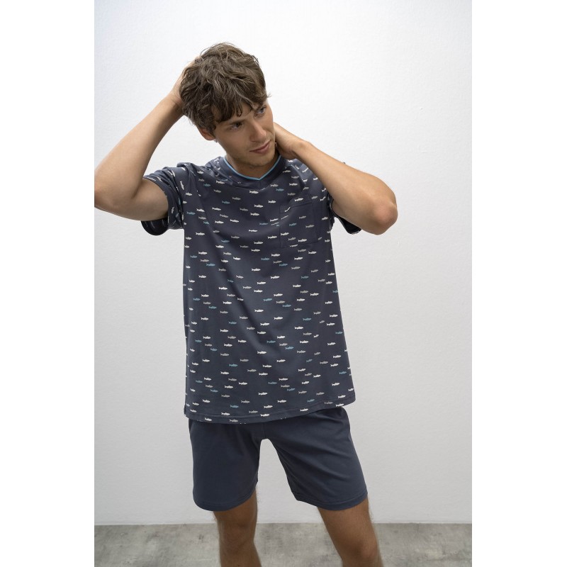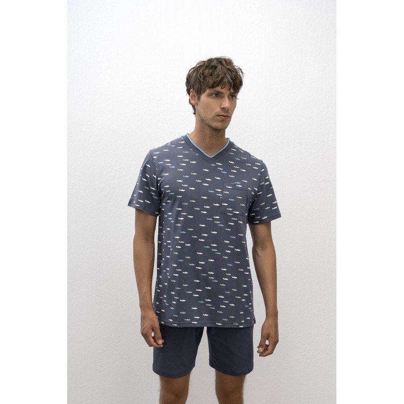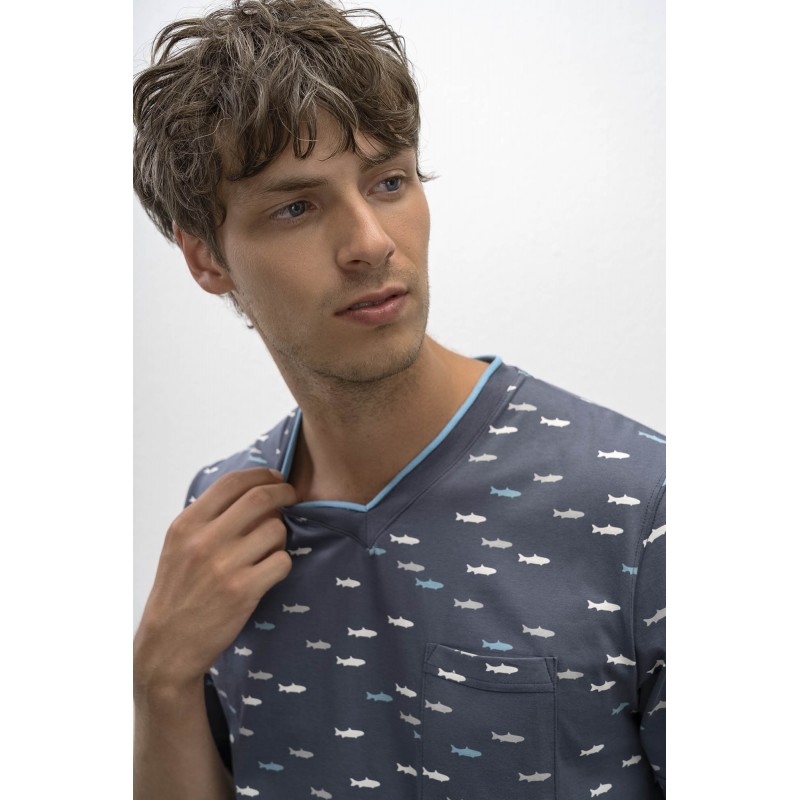 Vamp Ανδρική Πυτζάμα Βαμβακερή Με V Σχέδιο Καρχαρίες