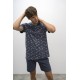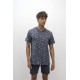 Εμπριμέ ανδρική πυζάμα,μπλούζα με κοντό μανίκι,V λαιμόκοψη και τσέπη στο στήθος,συνδυάζεται με μονόχρωμο κοντό παντελόνι. Αυτό το σχέδιο θα σας ταξιδέψει στις πιο όμορφες, καλοκαιρινές σας διακοπές και ας είστε στο σπίτι.Νεανική γραμμή,εξαιρετικής ποιότητας και εφαρμογής.