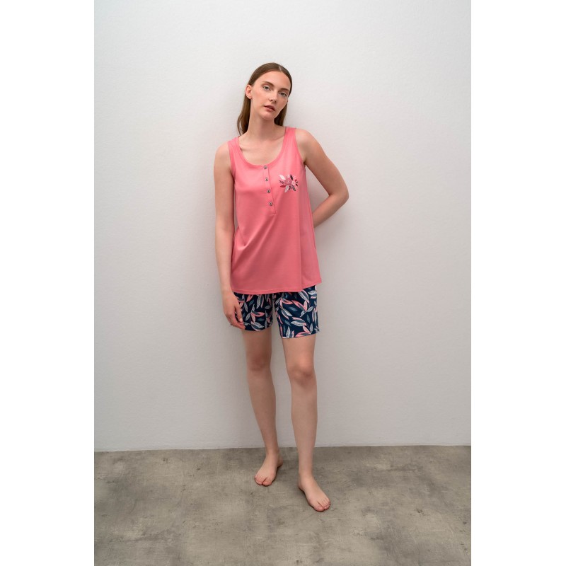 Vamp Γυναικεία Αμάνικη Πυτζάμα Με Βερμούδα Σχέδιο Φύλλα