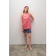 Αμάνικη,γυναικεία πυτζάμα με πατιλέτα και εμπριμέ βερμούδα. Ένα σετ που θυμίζει καλοκαίρι με τα ζωηρά χρώματά του.Εξαιρετικής ποιότητας και εφαρμογής,άνετη γραμμή.