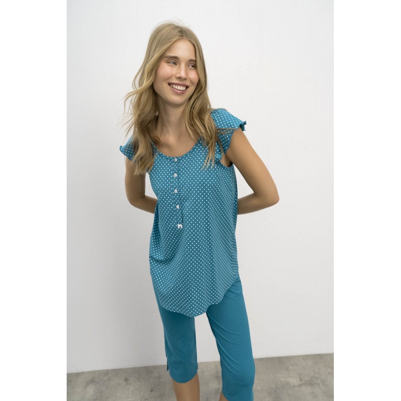 Vamp Γυναικεία Βαμβακερή Πυτζάμα Πουά Με Πατιλέτα Κάπρι Παντελόνι