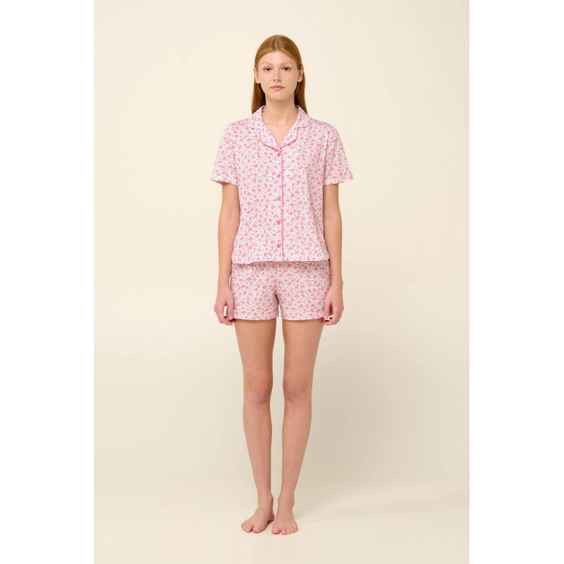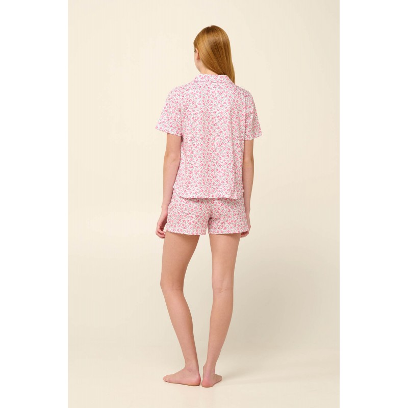 Vamp Γυναικεία Βαμβακερή Πυτζάμα Σε Ανδρόγυνο Στυλ Με Σορτσάκι Σχέδιο Τριαντάφυλλα Pink Dove