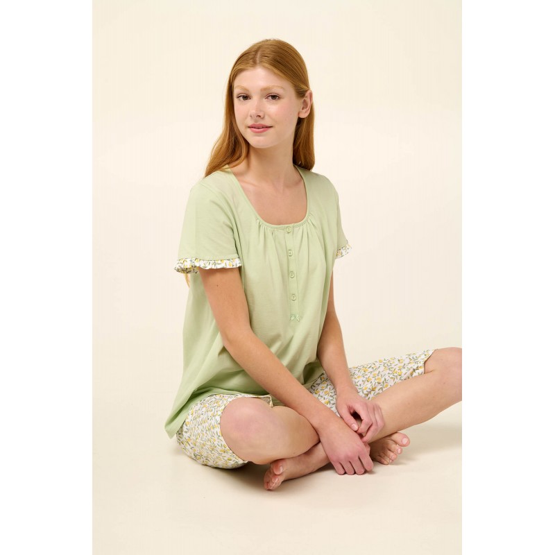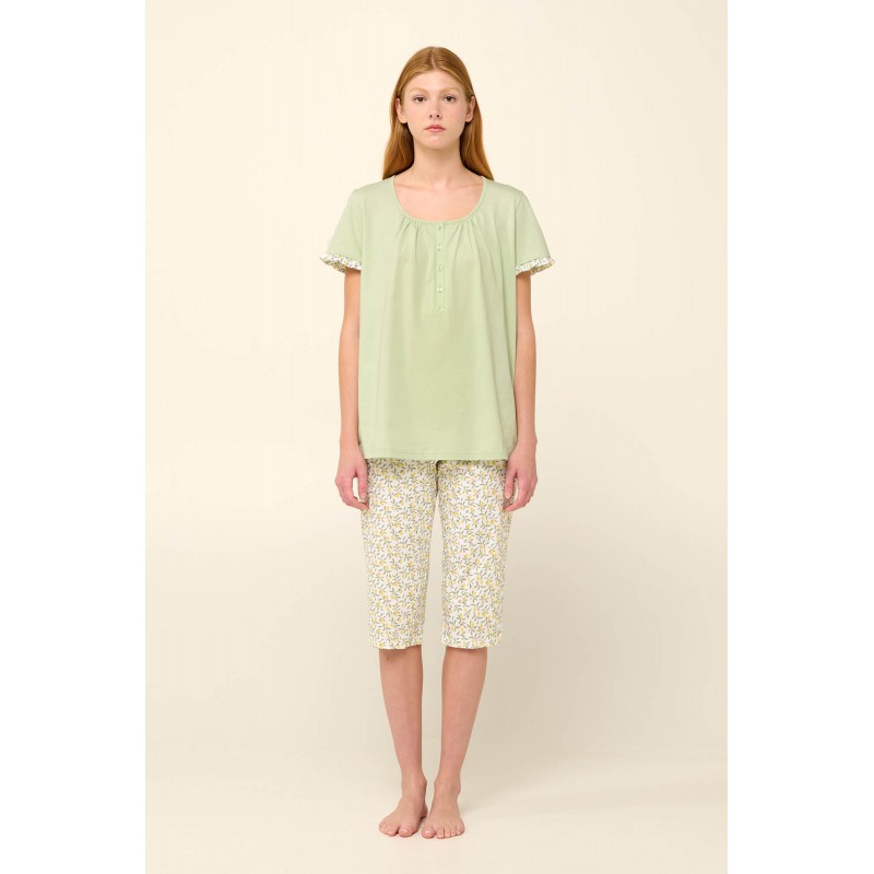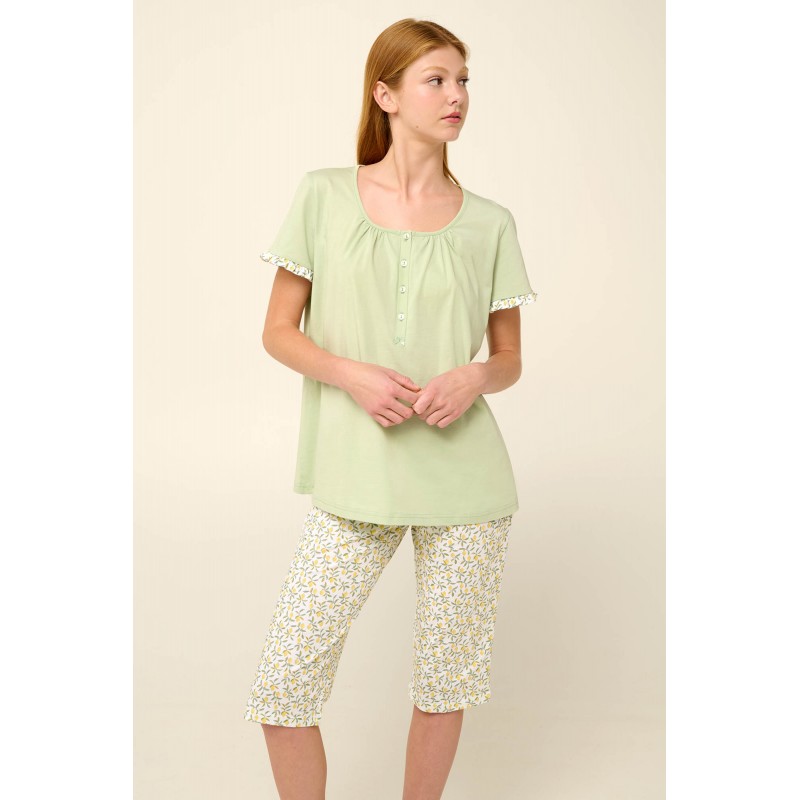 Vamp Γυναικεία Βαμβακερή Πυζαμα Κοντό Μανίκι Με Πατιλέτα & Κάπρι Παντελόνι Σχέδιο Λεμονάκια