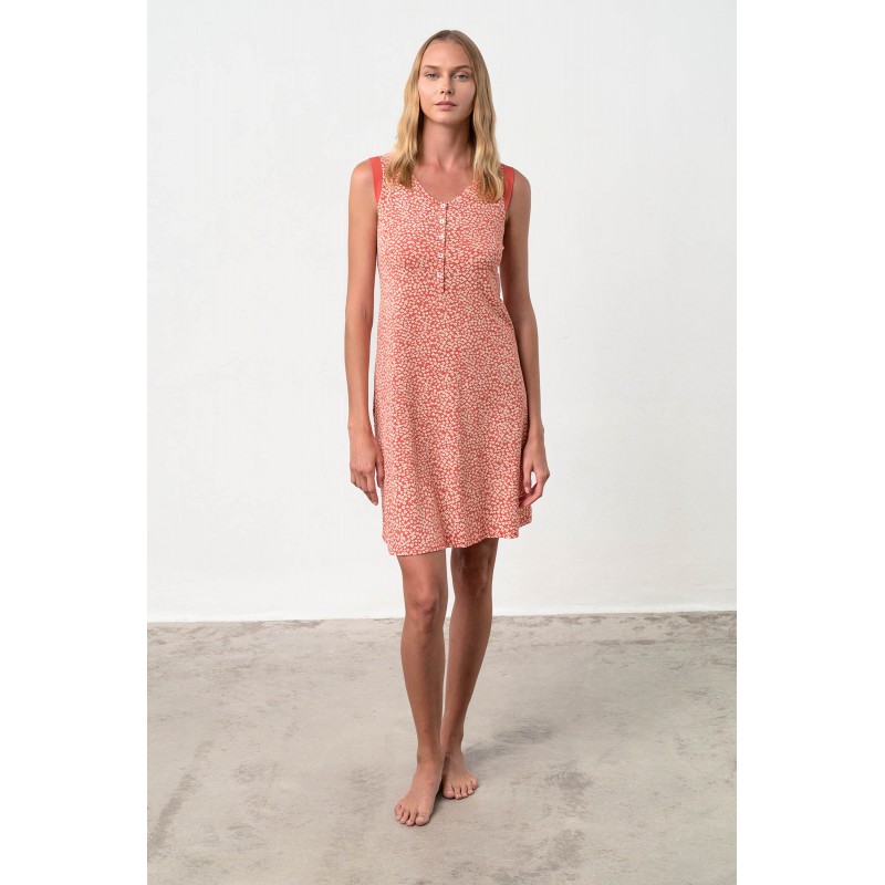 Αμάνικο νυχτικό με πατιλέτα σε χαλαρή γραμμή. Εξαιρετικής ποιότητας μοντάλ ύφασμα ,πολύ μαλακό και δροσερό , με μεγάλη ελαστικότητα .Ένα φωτεινό, φλοράλ σχέδιο με καλοκαιρινή διάθεση για κάθε στιγμή της ημέρας. Κατάλληλο και για θηλασμό . Μήκος 90 cm .