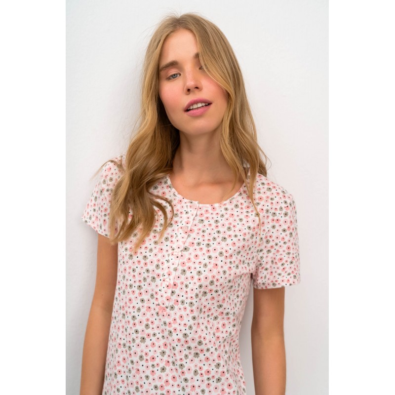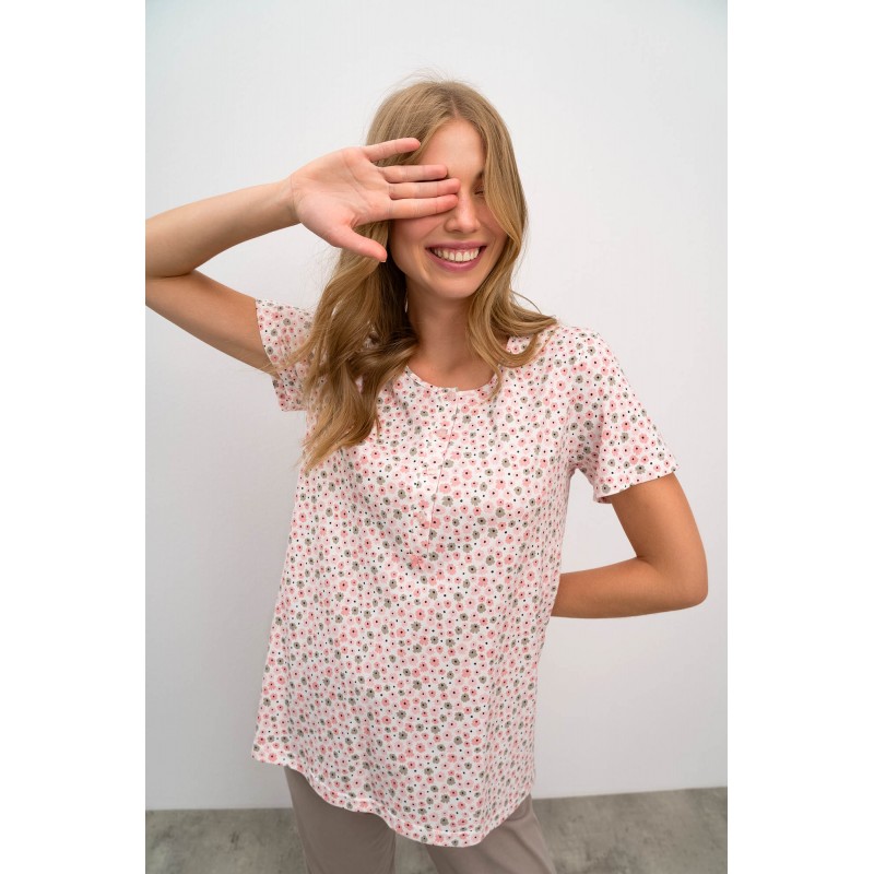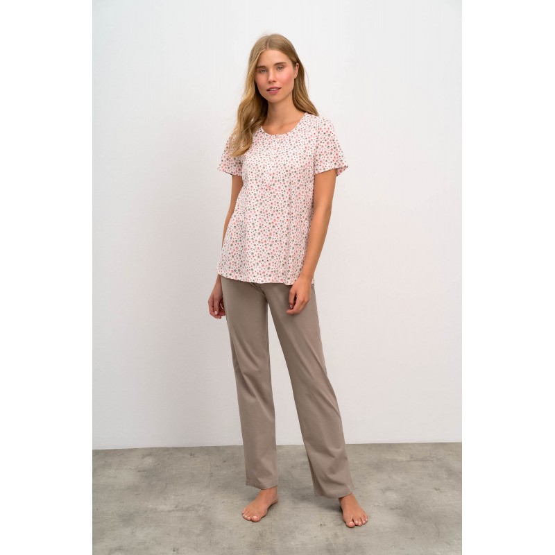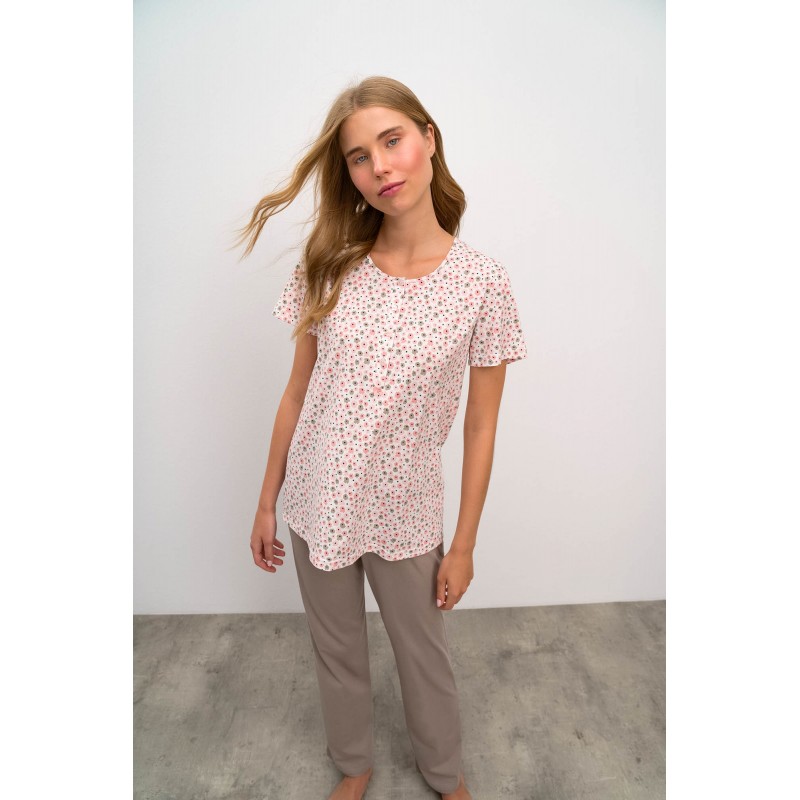Vamp Γυναικεία Πυτζάμα Κοντό Μανίκι Φλοράλ Με Μακρύ Παντελόνι