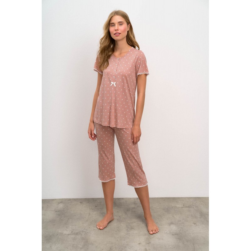 Vamp Γυναικεία Πυτζάμα Κοντομάνικη Με Κάπρι Παντελόνι Σχέδιο Μικρό-Μεγάλο Πουά