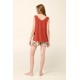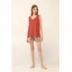 Vamp Γυναικεία Πυτζάμα Micro Modal Αμάνικη Με Εμπριμέ Σορτς Red Cinnabar