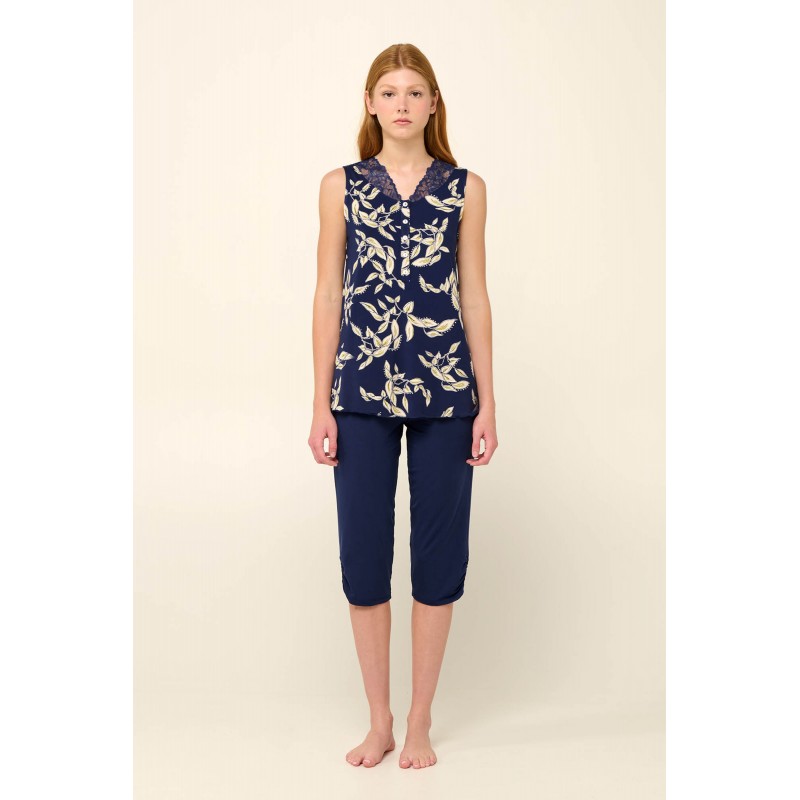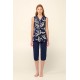 Vamp Γυναικεία Πυτζάμα Micro Modal Εμπριμέ Με Πατιλέτα & Μονόχρωμο Κάπρι Παντελόνι Blue Carven