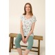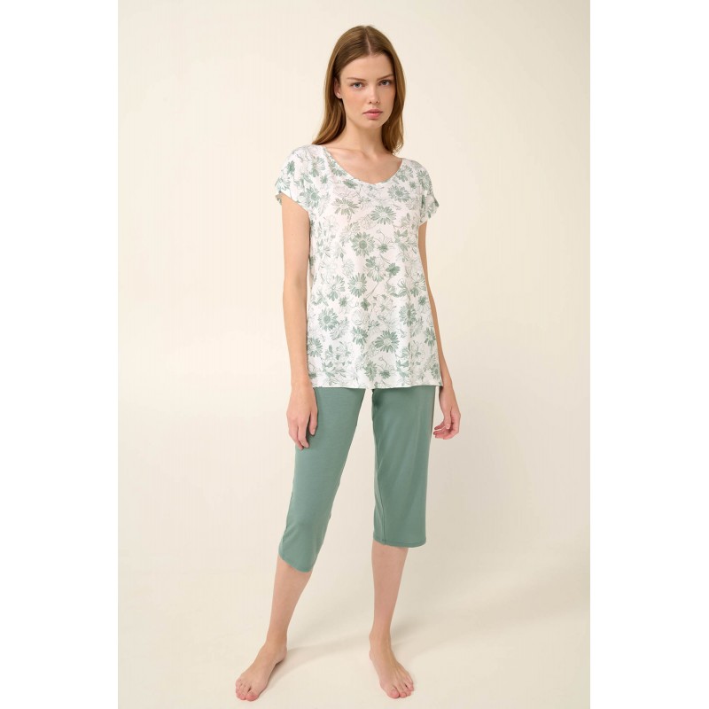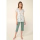 Vamp Γυναικεία Πυτζάμα Micro Modal Εμπριμέ Μπλούζα Κοντό Μανίκι & Μονόχρωμο Κάπρι Παντελόνι