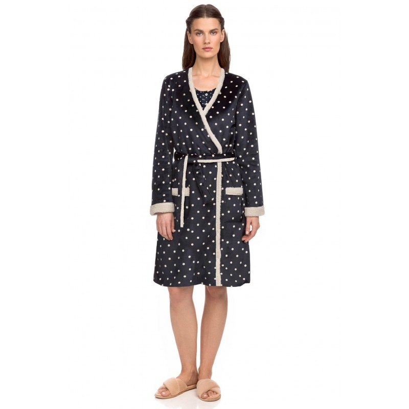 Vamp Γυναικεία Ρόμπα Πουά Κοντή Με Ζώνη